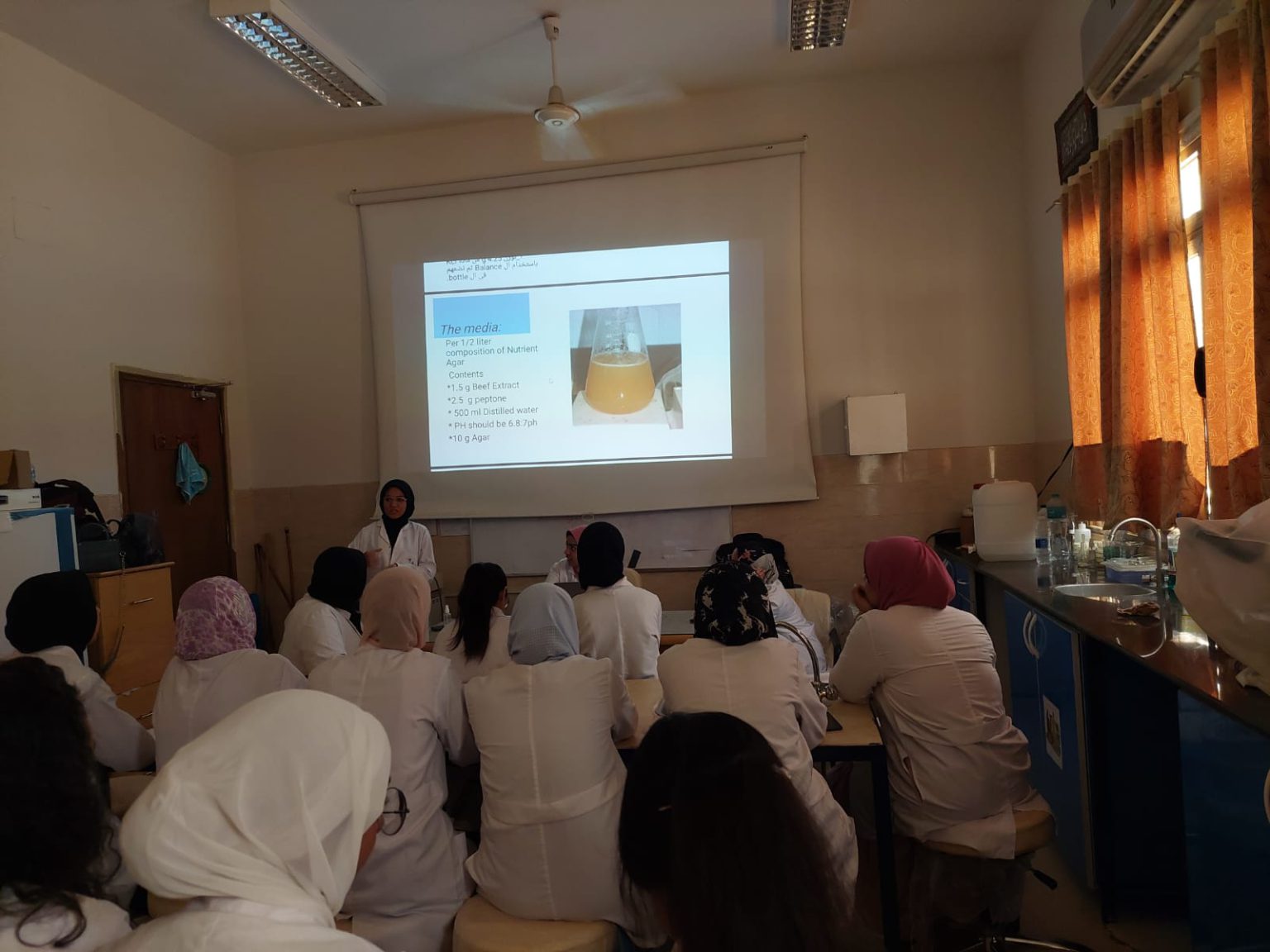 In the laboratory, basic subjects are taught to second-level students, which is agricultural microbiology, as well as teaching specialization subjects to third-level students (biotechnology program), the division of bacteria, as well as materials for biological treatment of environmental pollutants, applied microbiology, and physiology of microorganisms for fourth-level students biotechnology.